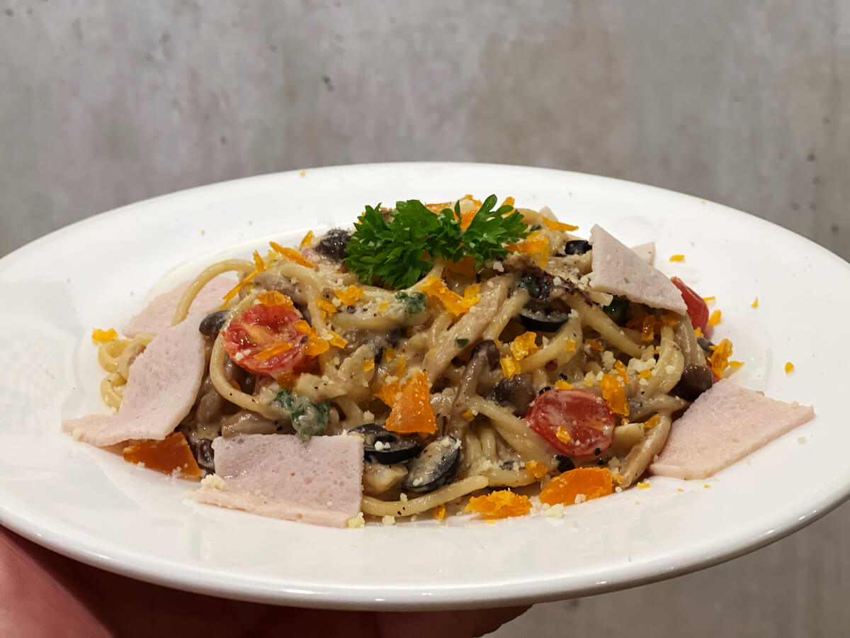 Whether it’s breakfast, lunch, or dinner, we’ve got you covered with creamy spaghetti, croissant sandwiches, and freshly brewed coffee.